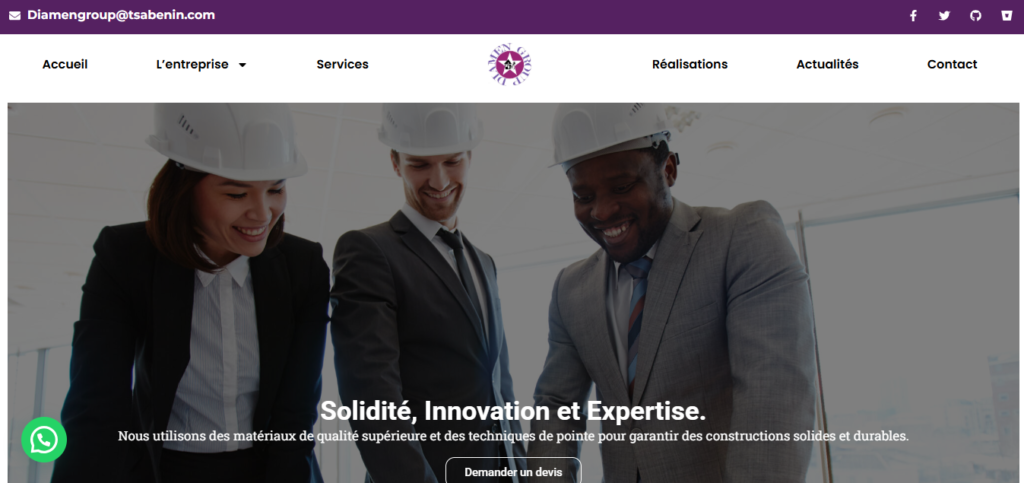 Le Groupe Diamen est une entreprise spécialisée dans le bâtiment et les travaux publics (BTP), offrant des solutions de sécurité innovantes et durables pour la construction, la rénovation et les infrastructures. Grâce à une équipe qualifiée et un savoir-faire éprouvé, nous réalisons des projets de qualité alliant performance, et respect des normes. Groupe Diamen s’engage à accompagner ses clients avec professionnalisme pour bâtir un avenir solide et durable.