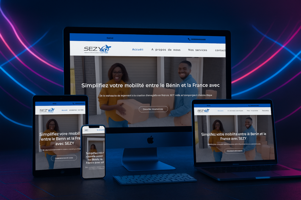 SEZY est une agence spécialisée dans l’envoi de colis du Bénin vers la France. Nous avons créé un site vitrine moderne et intuitif pour présenter ses services de transport international, faciliter la prise de contact et renforcer la confiance des clients. Le site met en avant la fiabilité, la rapidité et l’accessibilité des offres proposées par SEZY, avec une navigation fluide sur mobile et ordinateur.